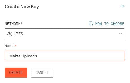 - In the subsequent modal, choose IPFS, title your project, then select 'CREATE'.